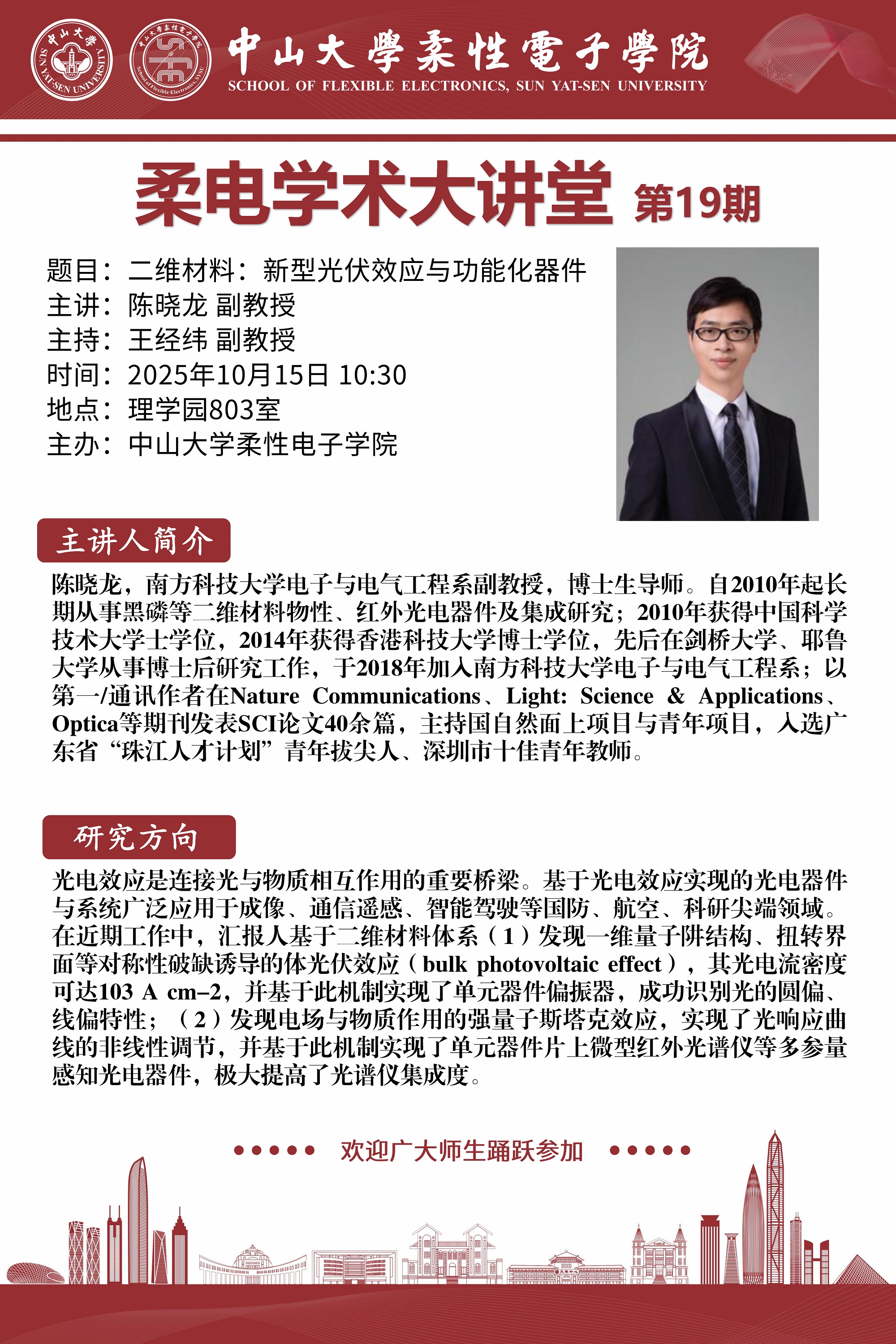 导航痕迹 44118太阳成城 学科科研 学术讲座 柔电学术大讲堂第19期:二维材料:新型光伏效应与功能化器件 扫描此二维码分享 柔电学术大讲堂第19期:二维材料:新型光伏效应与功能化器件 发布人:谢添 发布日期:2025-10-11