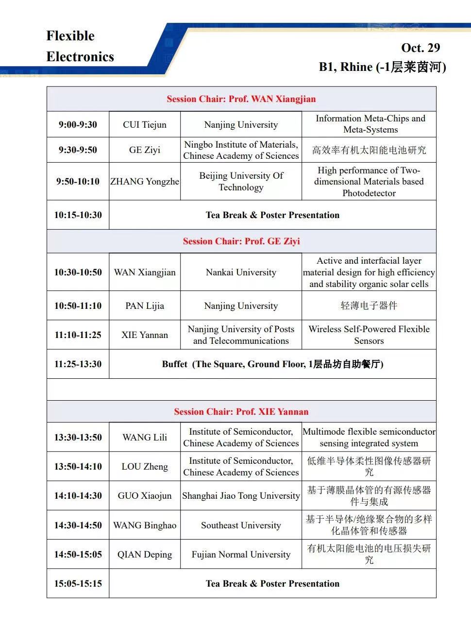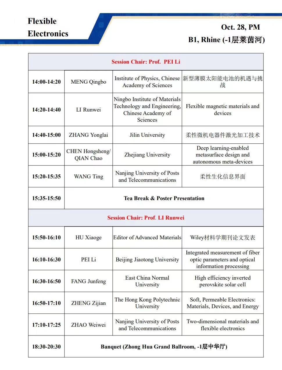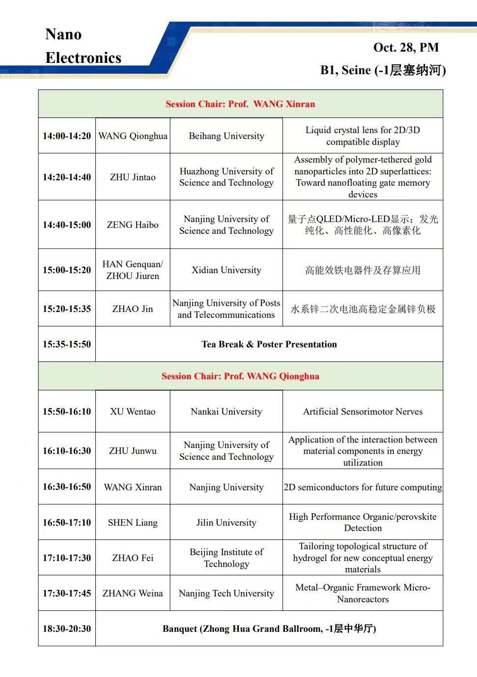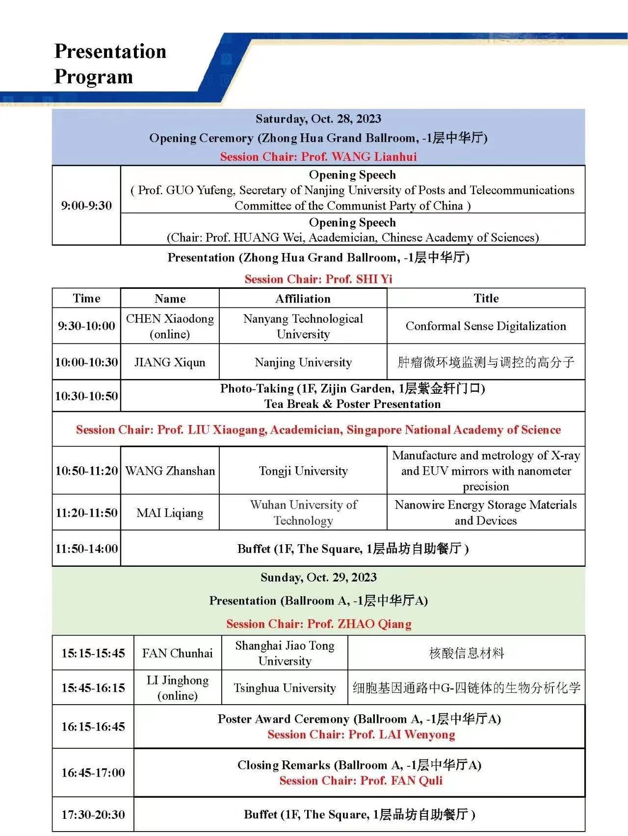 会议主席:黄维,刘小钢,张华,郑子剑