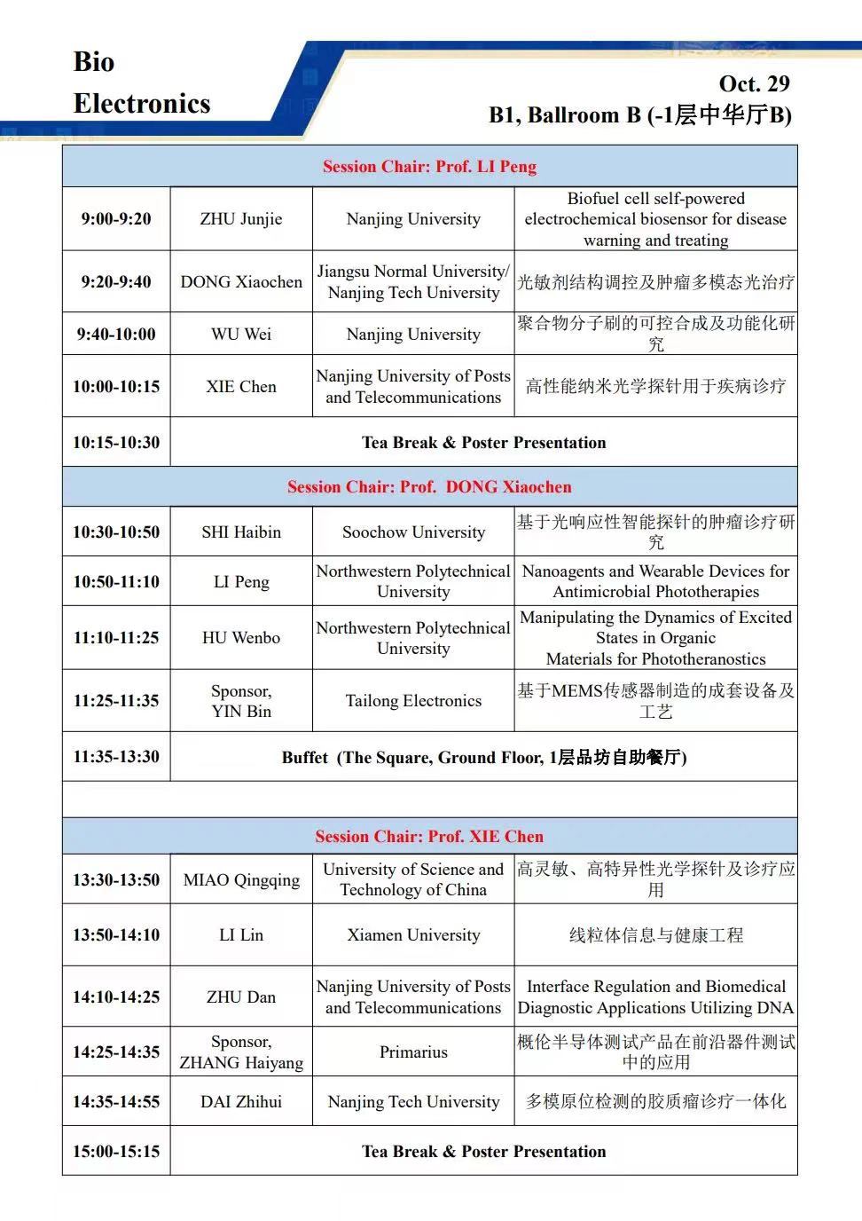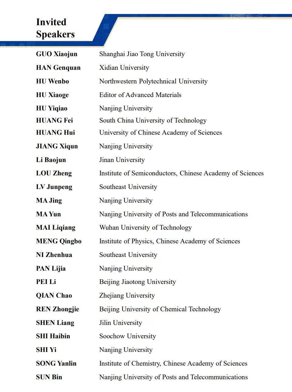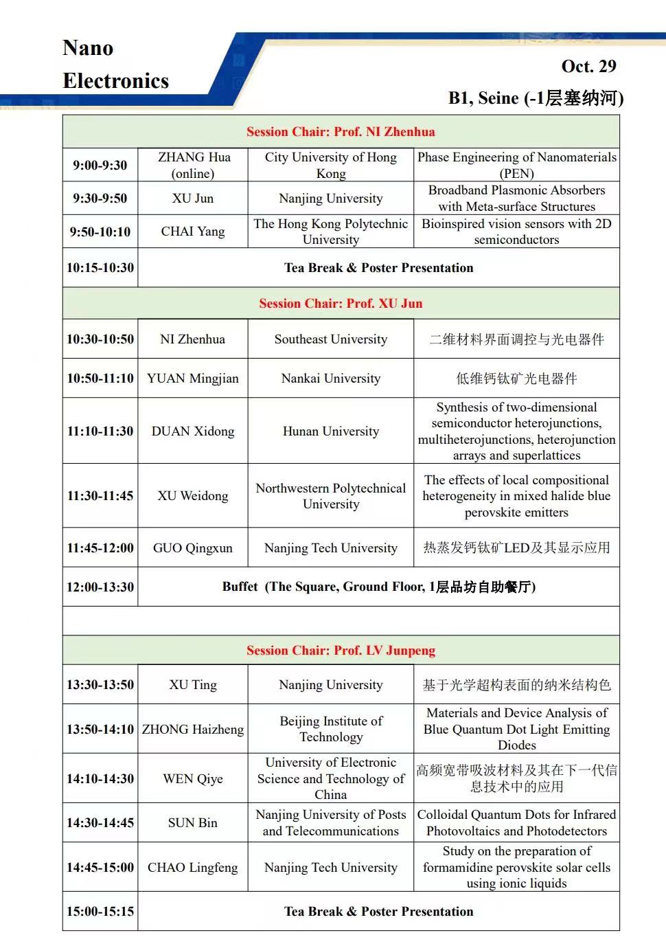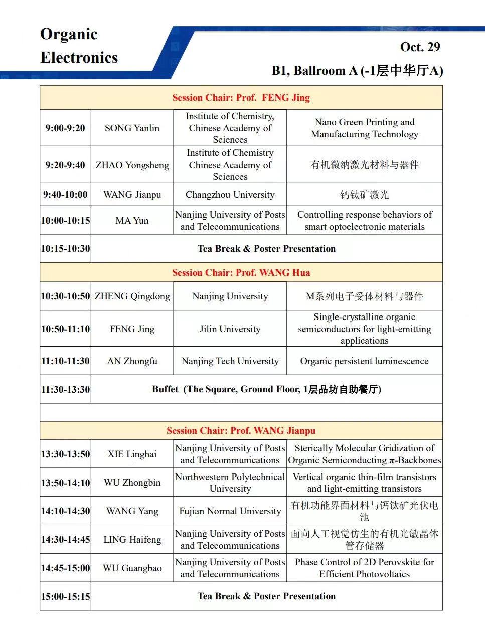 会议主席:黄维,刘小钢,张华,郑子剑